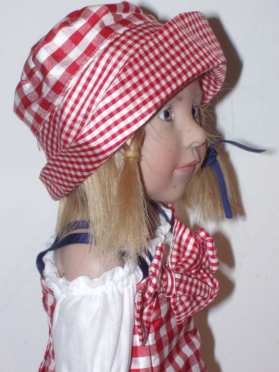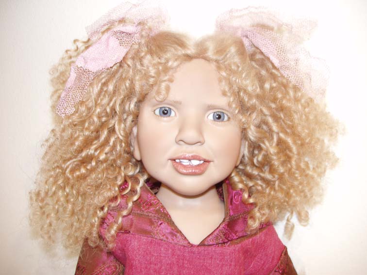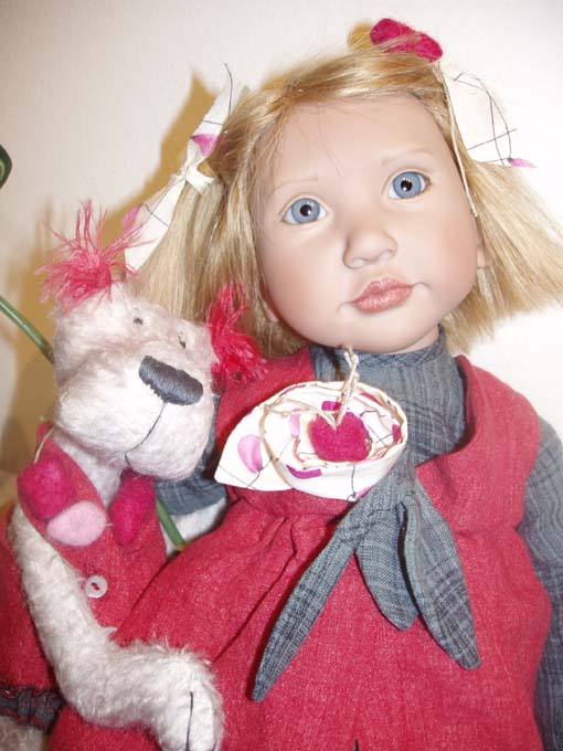 Marie-Cécile! She has the same mold as Roos, blond hair and she is holding a cat! 55 cm Limit 75!