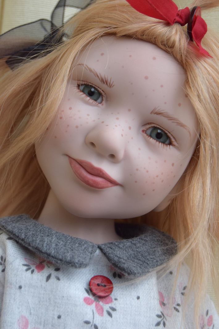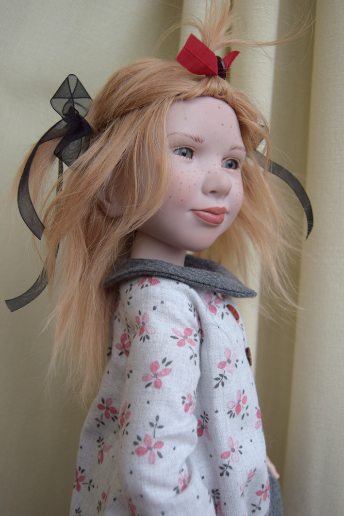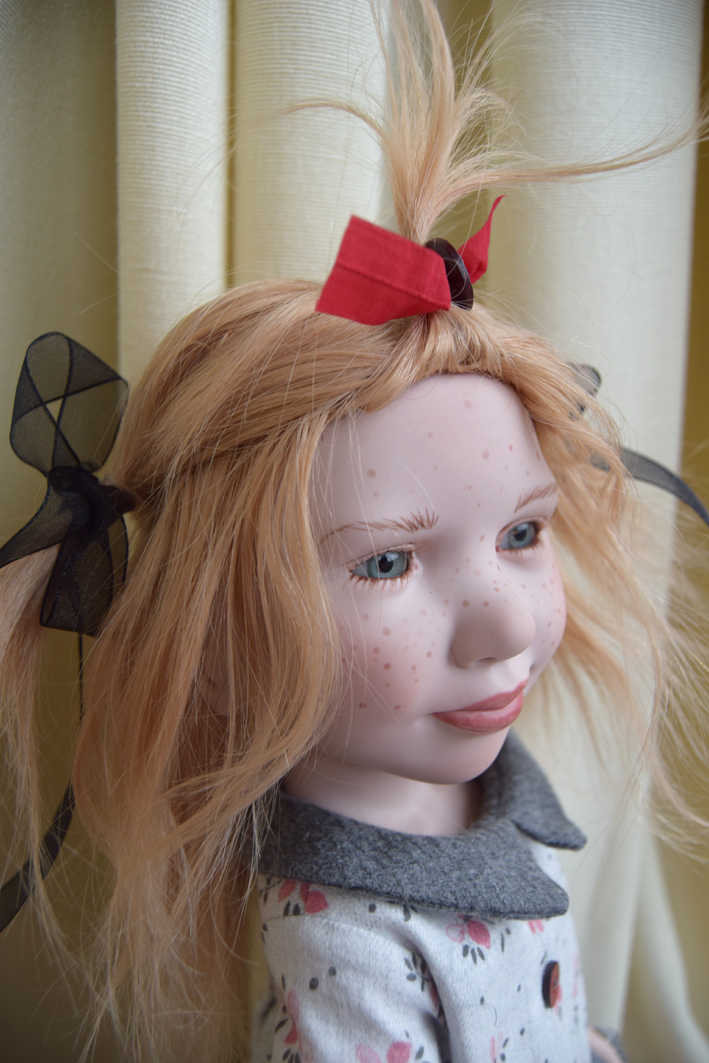 She has straw blond hair what makes her look even more innocent |