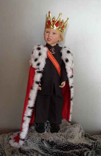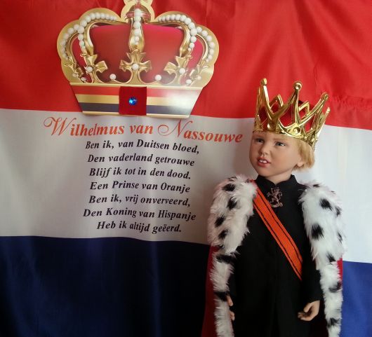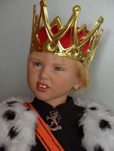What Royalty Wilem shows with his marvelous crown his orange sash and royal cloak. The broach shows the Lion, symbol of the Dutch Monarchy |