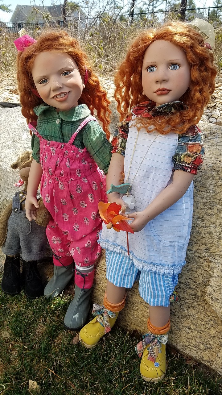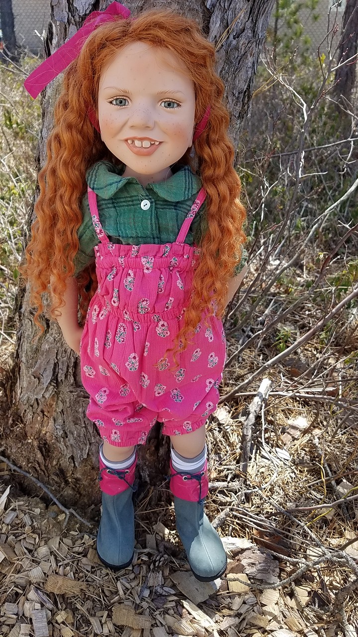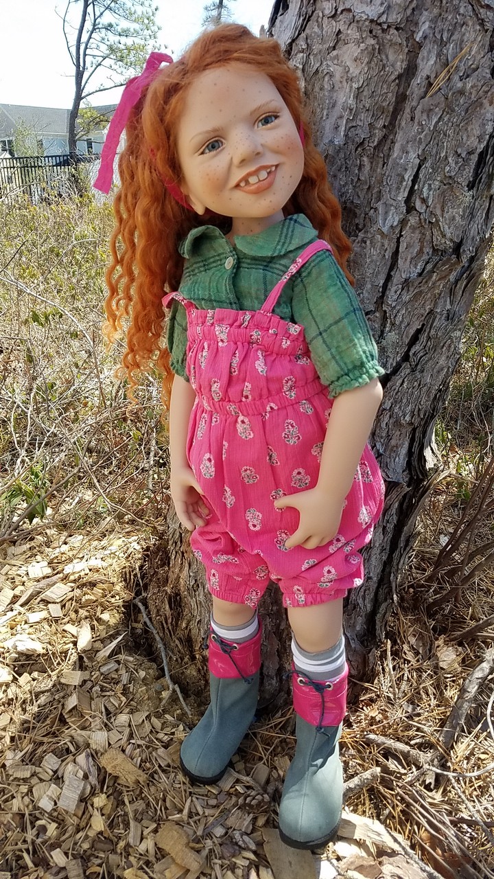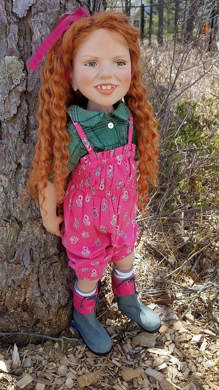 The greens from nature go so well with the greens in Malu's blouse, and that great red hair colour Zwergnase dolls often have!